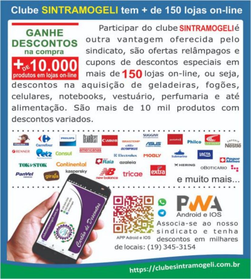 O SINTRAMOGELI fechou parceria com a rede de convênios ALLSUL, que oferece descontos exclusivos em centenas de estabelecimentos em todo o Brasil.